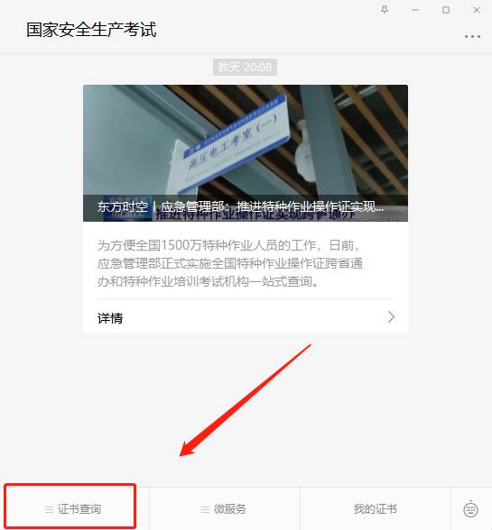 (1)關(guān)注公眾號以后,點(diǎn)擊公眾號內(nèi)右下角“證書查詢”