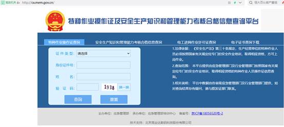 方法二:登錄應(yīng)急管理部政府網(wǎng)站(tttp://www.mem.gov.cn/),從“服務(wù)”中的“查詢服務(wù)進(jìn)入“特種作業(yè)操作證及安全生產(chǎn)知識和管理能力考核合格信息查詢平臺”,輸入個人信息查詢即可。